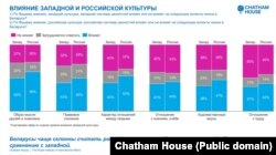 - На думку рэспандэнтаў, уплыў расейскай культуры ў Беларусі пераважае ўплыў заходняй. Але заходні ўплыў большасьць ацэньвае станоўча.