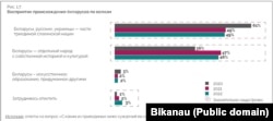 Ніжэй прыводзяцца некаторыя вынікі апытаньня з тлумачэньнямі аўтара справаздачы.