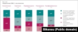 На стаўленьне да нацыянальнага апасродкавана ўплывае знаходжаньне ў той ці іншай інфармацыйнай прасторы. Сэгмэнты кардынальна адрозьніваюцца тым, якімі мэдыя яны карыстаюцца. «Сьвядомыя» — адзіны сэгмэнт, які зьяўляецца сталай аўдыторыяй недзяржаўных СМІ. У той жа час «Савецкія», «Абыякавыя» і «Русыфікаваныя» найбольш падобныя ў перавагах: тут пераважае актыўнае спажываньне дзяржаўных мэдыя.
