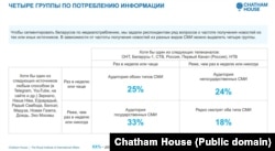 Пры гэтым варта ўлічыць, што аўдыторыі незалежных СМІ проста трапіць у іншы сьвет, для гэтага ім дастаткова проста ўключыць тэлевізар. У той жа час спажывальнікам дзяржаўных СМІ трэба рабіць пэўныя высілкі, каб трапіць у сьвет незалежных, трэба ставіць сабе VPN, трэба шукаць інфармацыю, і гэты пошук суправаджаецца нават пэўнай рызыкай.