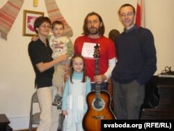 Галіна і Андрэй Падлескія, іх дзеткі Данілка і Паўліна са Зьмітром Вайцюшкевічам пасьля ягонага канцэрту ў Нью-Ёрку. 2009.