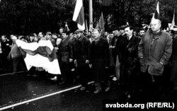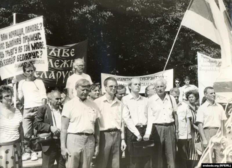 Аляксей Хадыка: «Я памятаю ўжо па расповедах, мне расказалі, што па плошчы бегала сьвіньня, на якой была напісана „Дземянцей“. Але я на той час знаходзіўся ў Паланзе. А якія забавы ў намёце — канечне, радыё. Я пайшоў на пошту і спытаўся: „Танкі ўжо на вуліцы?“. Яны сказалі: „Пакуль што не“. А потым я не пасьпеў даехаць, дый асабліва ня рваўся, з маладой жонкай… Ну, і мне ж сказалі, што танкаў пакуль няма».