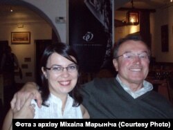 Разам з жонкай ТацьцянайМарыніч: “У нас з Тацьцянай быў грамадзянскі шлюб, які мы плянавалі ўзаконіць. Канечне, не ў турме. Да суду, пакуль я знаходзіўся ў “амэрыканцы”, Тацяна, як грамадзянская жонка, мела права на спатканьні і перадачы. У калёніі правілы іншыя. Там без штампа ў пашпарце на доўгатэрміновае спатканьне разьлічваць немагчыма. Але раптам у мяне здарыўся інсульт, і ўзьнікла пагроза, што я надоўга застануся без падтрымкі. Марудзіць было нельга і мы вырашылі зарэгістравацца.