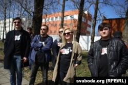 Некаторыя зь іх былі ў цішотках з надпісам «Жыве Белавус». У ліку тых, хто сустракаў прадпрымальніка, быў і вызвалены днём раней апэратар «Белсату» Аляксандар Баразенка.