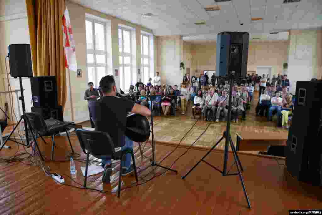 Намесьнік старшыні выбаркаму па Кальварыйскай выбарчай акрузе № 104 Міхаіл Савановіч зачытаў вытрымку з правілаў правядзеньня агітацыі і сказаў, што канцэрты, маўляў, забаронены.