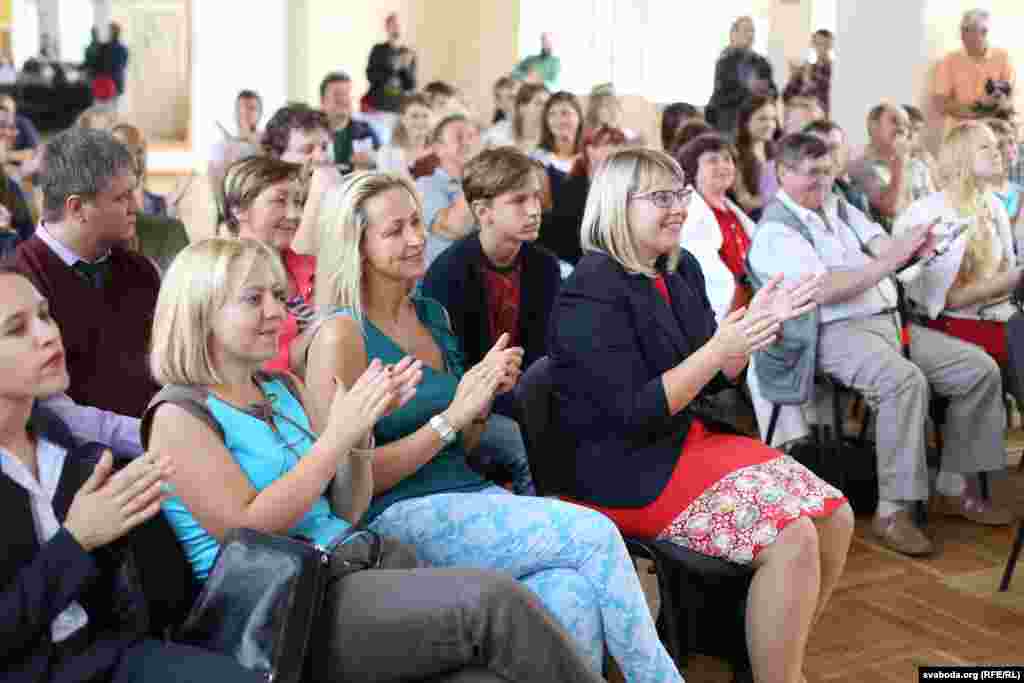 Марына Хоміч, а таксама лідэры БХД Павал Севярынец і Віталь Рымашэўскі ўзялі слова перад выступам сьпевака.