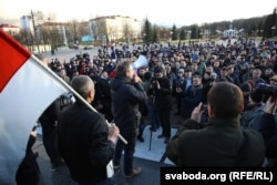 Выйшаў старшыня райвыканкаму, запрасіў прадстаўнікоў пратэстоўцаў у кабінэт. Людзі папрасілі выключыць радыётрансьляцыю на плошчы, скандуюць «Ганьба!»