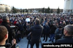 Выступае Віталь Рымашэўскі. Згадвае пра былога мэра Маладэчна Генадзя Карпенку. Скандуюць: «Генадзю Карпенку слава!»